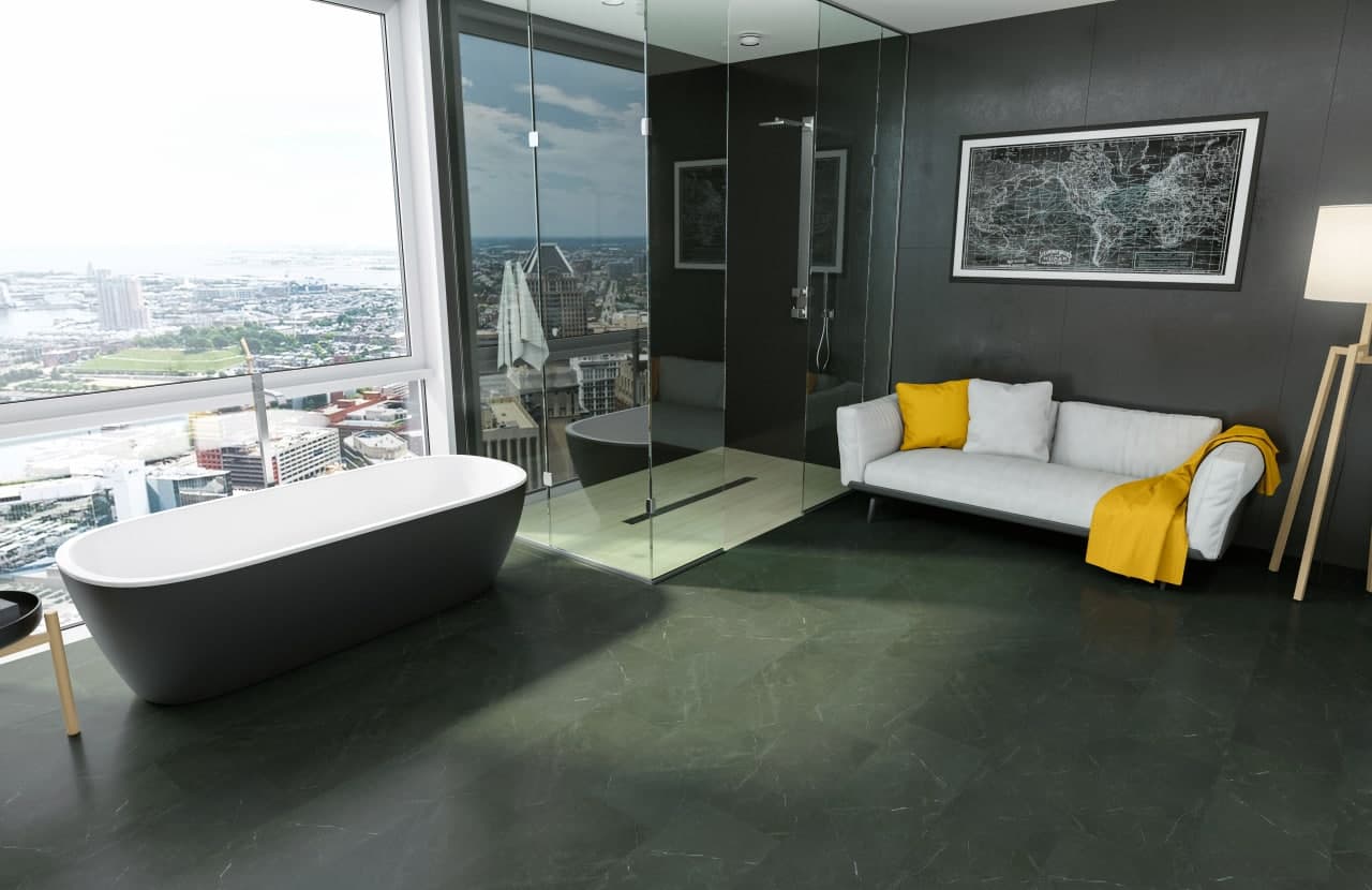 3. Судя по описанию кварцевый ламинат можно было положить и в сан узел, но т. к. керамогранит на пол я купил ещё до выдачи ключей, то я не захотел дополнительно заморачиваться.